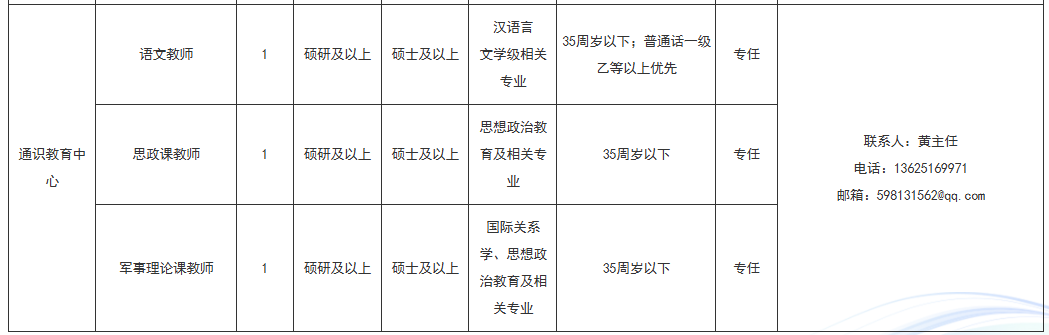 5.退休返聘人员、代课教师及校外兼课、兼职教师根据专业能力、年龄及身体状况等面议。