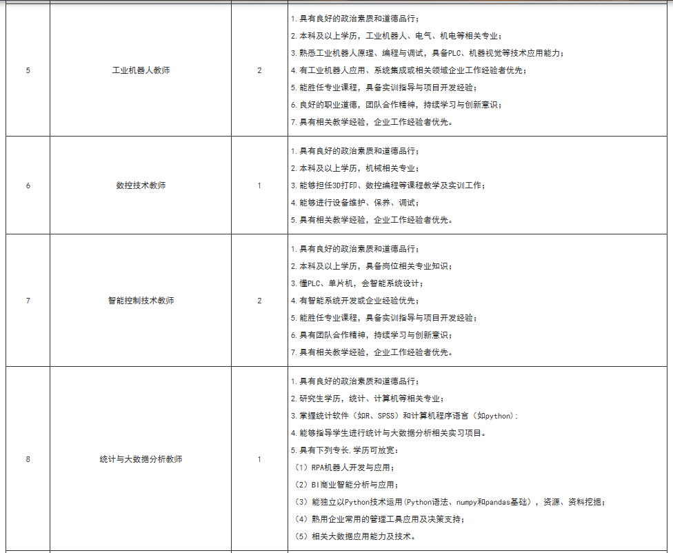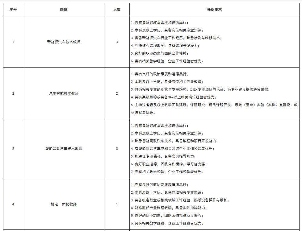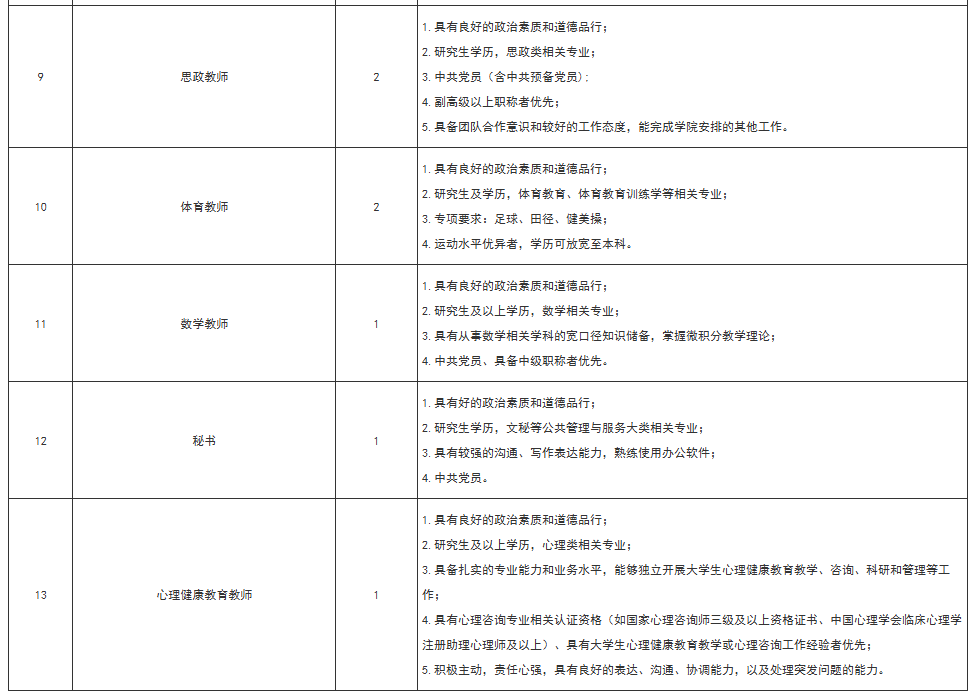 因学院发展需要,现对外招聘若干岗位,详情见下表:
