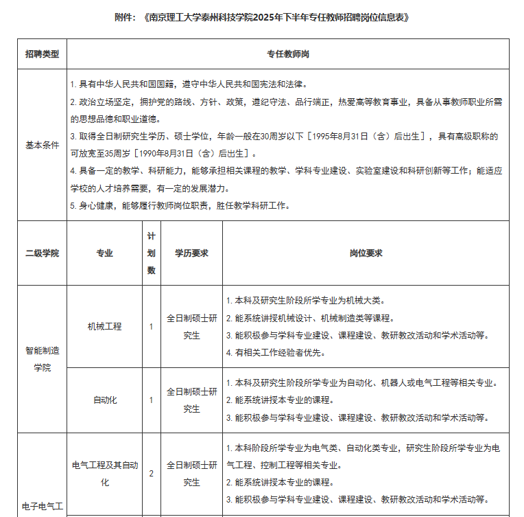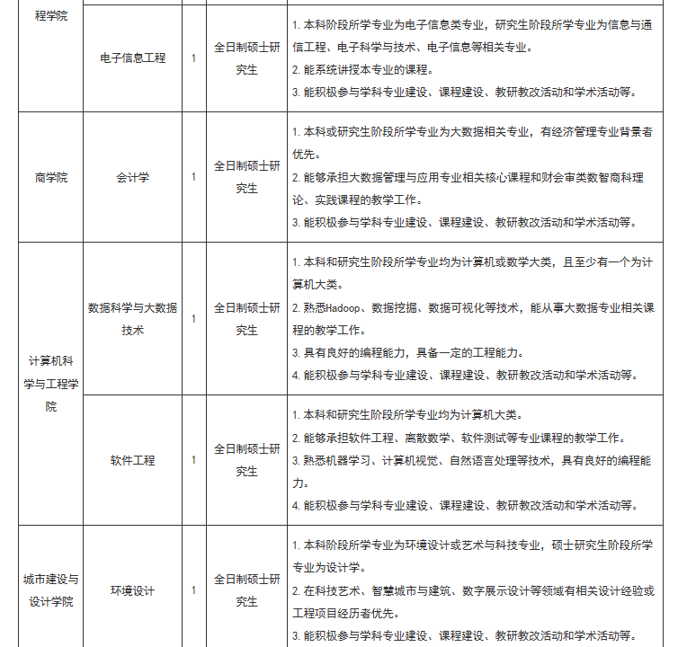 三、招聘对象:专任教师(具体岗位要求见附件)。