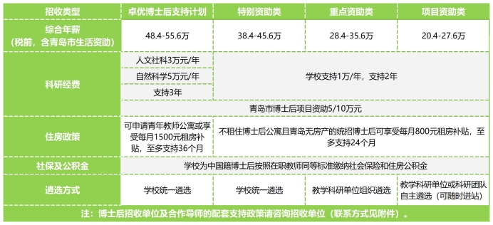 2.特别资助类博士后期满达到培养要求可应聘相关学科教师岗位,也可参与齐鲁青年学者等青年人才项目的遴选;