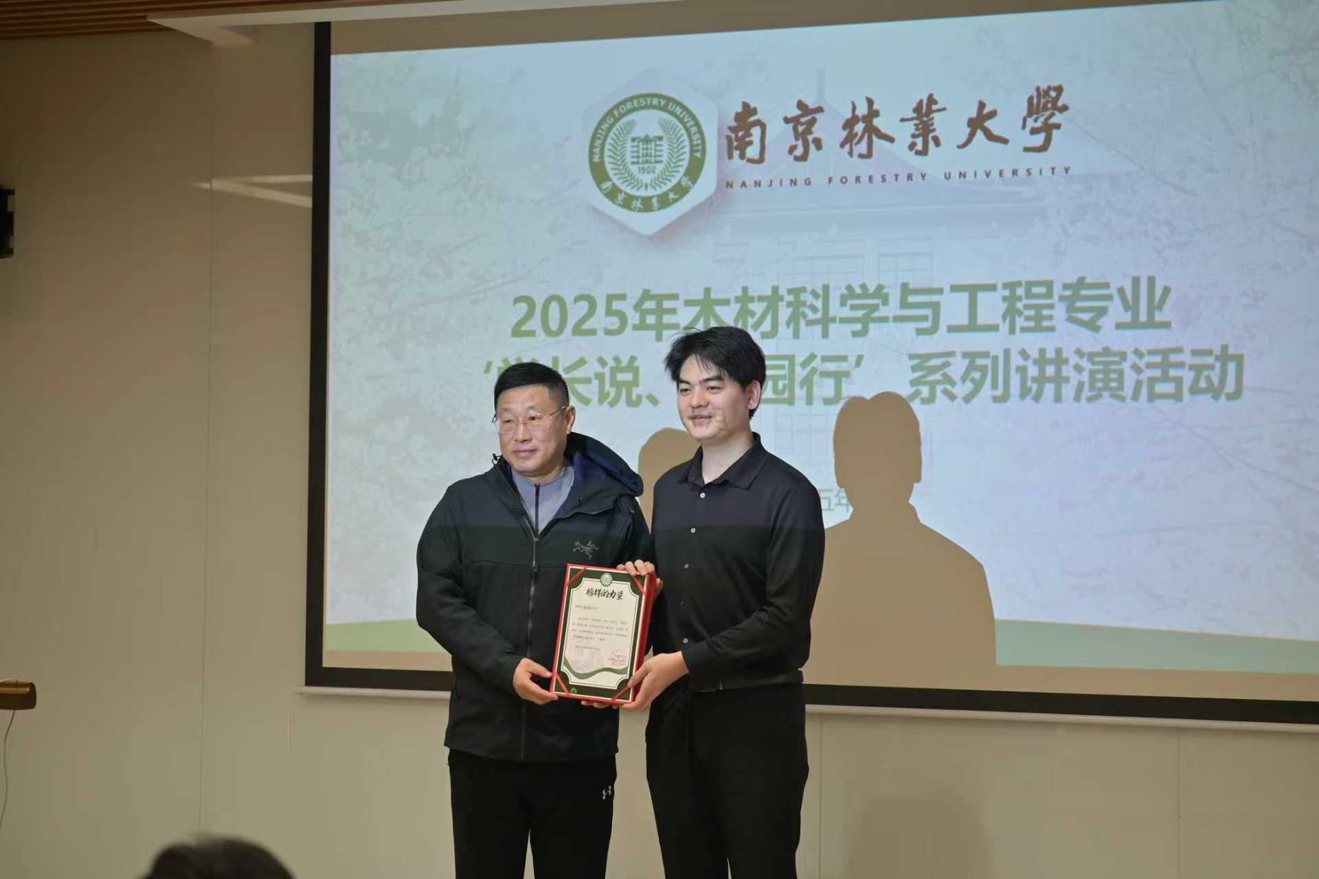 为深入落实立德树人根本任务,进一步强化专业认同,引导青年学子树立艰苦奋斗、追求卓越的行业精神,推动人才培养深入融入行业发展,10月24日下午木材科学与工程专业“学长说、校园行”系列讲演活动在新图书馆8B112正式启动。首场报告由我院优秀校友、宁夏新起点工贸有限公司总经理张永跃先生主讲。学院党委副书记、副院长蔡志敏,木材科学与工程系主任石江涛,以及木材科学与工程专业本科生、木材科学与技术学科研究生代表共同参加了此次活动。活动由石江涛主任主持。