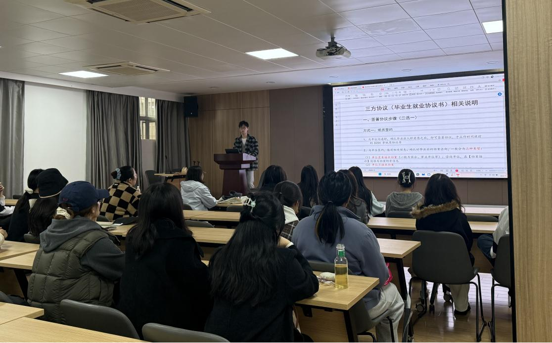 为扎实推进就业育人工作,提升2026届毕业生求职能力,自十月下旬始,我院于会议室一、教学五楼等地相继组织开展了各毕业班级就业规划与面试指导专题活动。活动由研究生辅导员姚舜禹主讲。