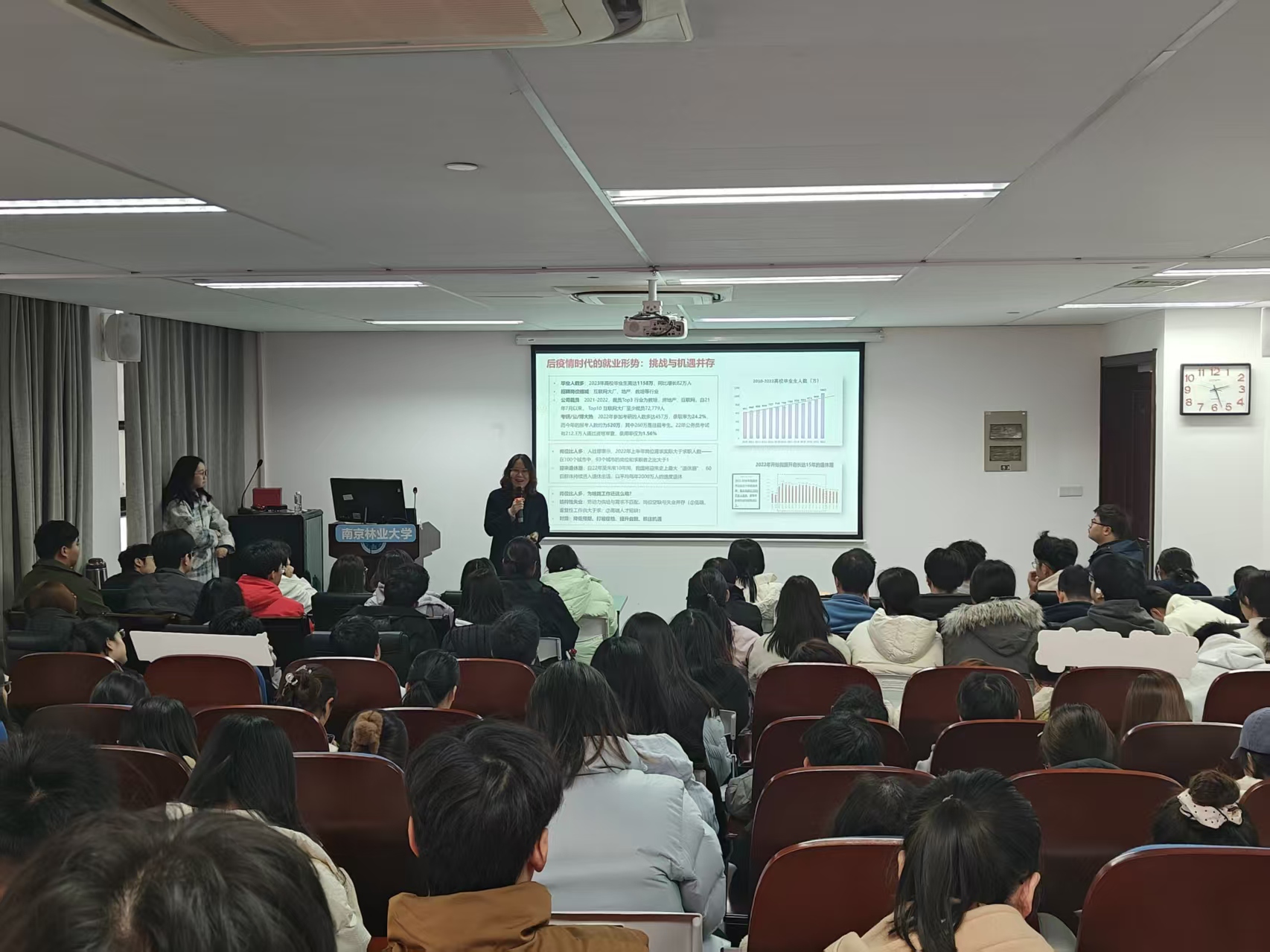 为精准对接研究生就业需求,持续提升毕业生就业竞争力,深化校企协同育人成效,拓宽优质就业渠道。12月3日下午,由学校研究生工作部主办,轻工与食品学院、化学工程学院、生态与环境学院联合承办的 “职达未来—就业能力提升专题讲座”在教九楼9E406顺利举行。华为终端公司高级人力资源专家王清丽受邀担任主讲嘉宾,各学院2026届研究生代表百余人到场参与学习交流。